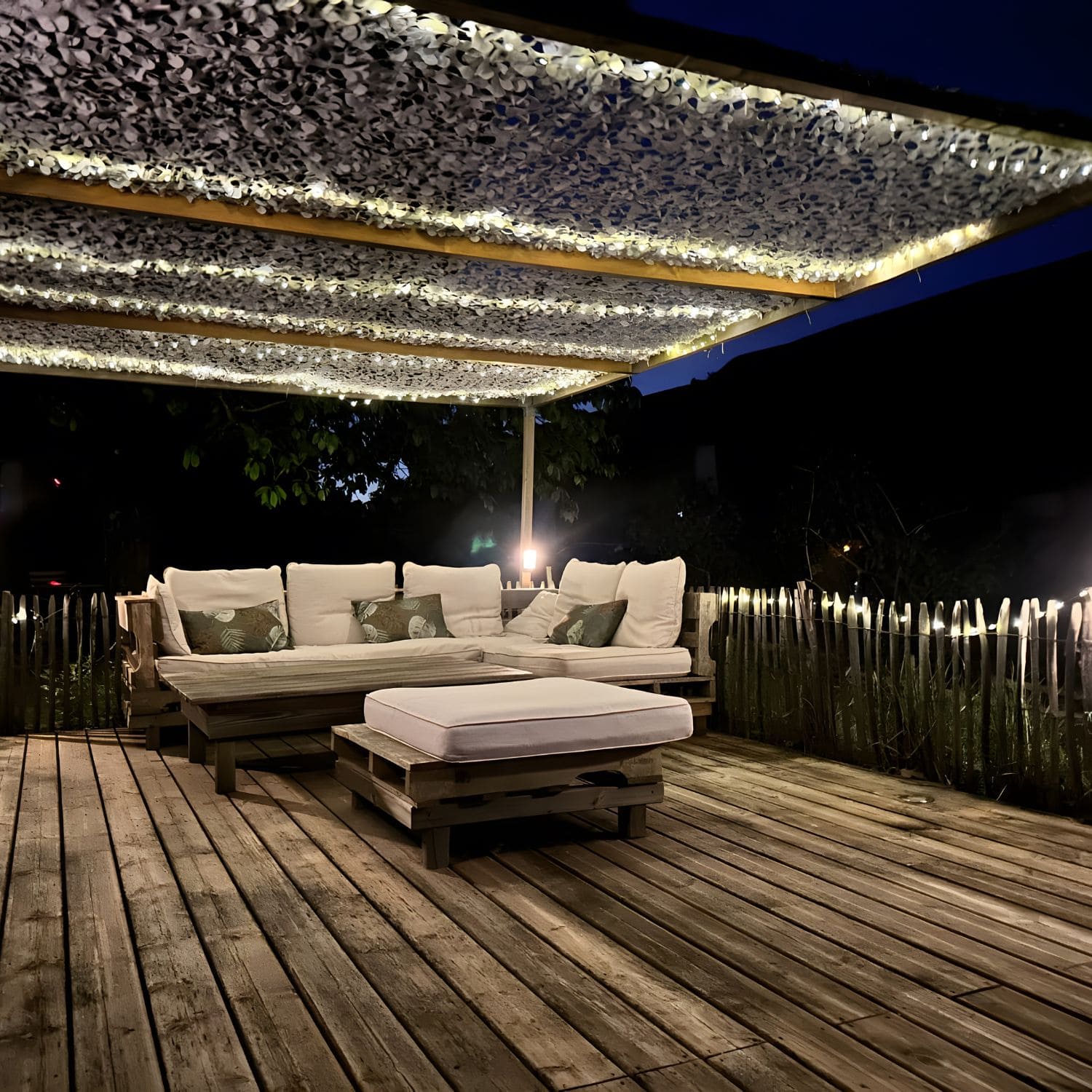 Aproveite seu terraço o ano todo, deixando entrar ar e luz com nossa rede de camuflagem. Retome o controle do seu terraço.