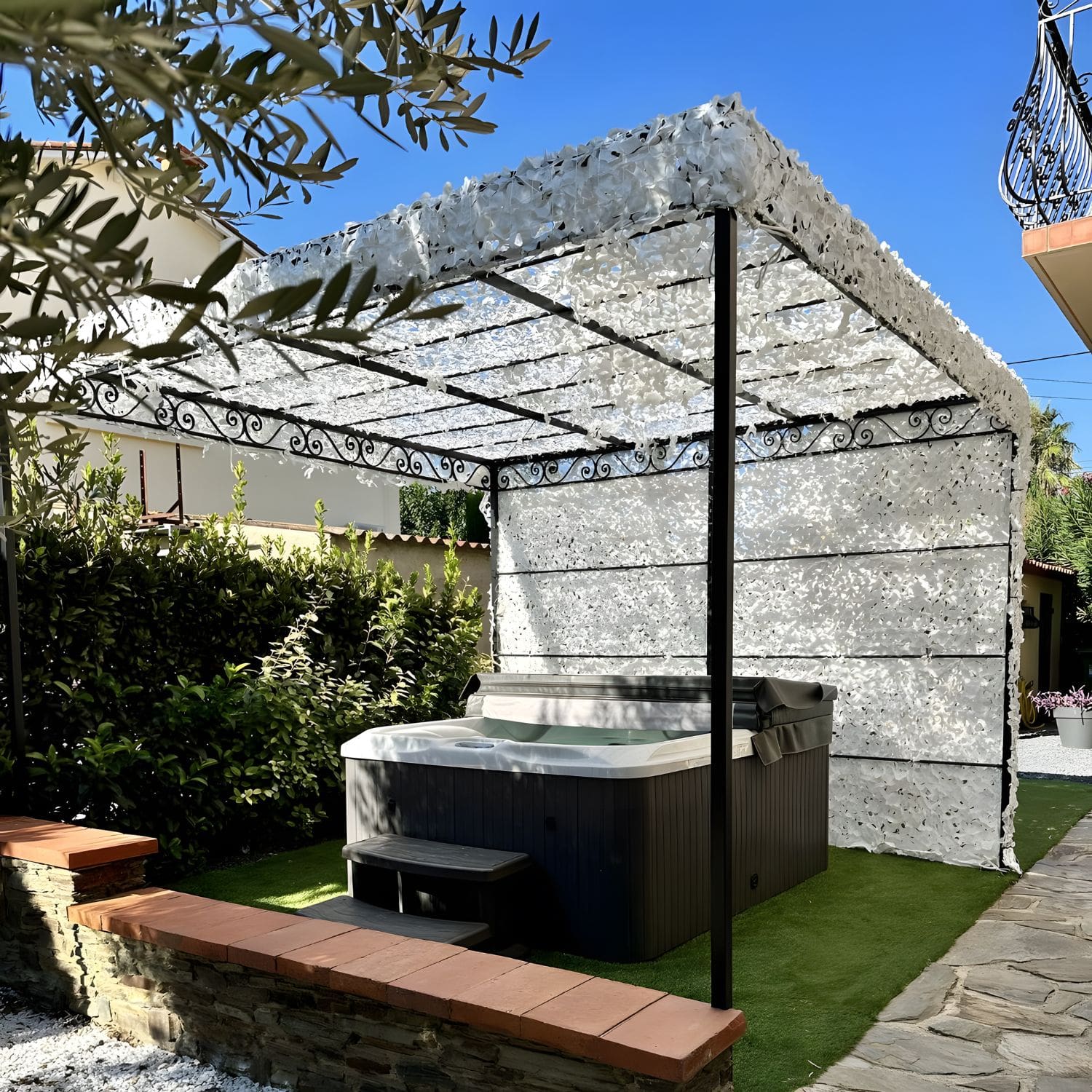 - Estética: Con su color blanco y su patrón de camuflaje, este tipo de red aporta un toque de elegancia y naturalidad a tu decoración exterior.