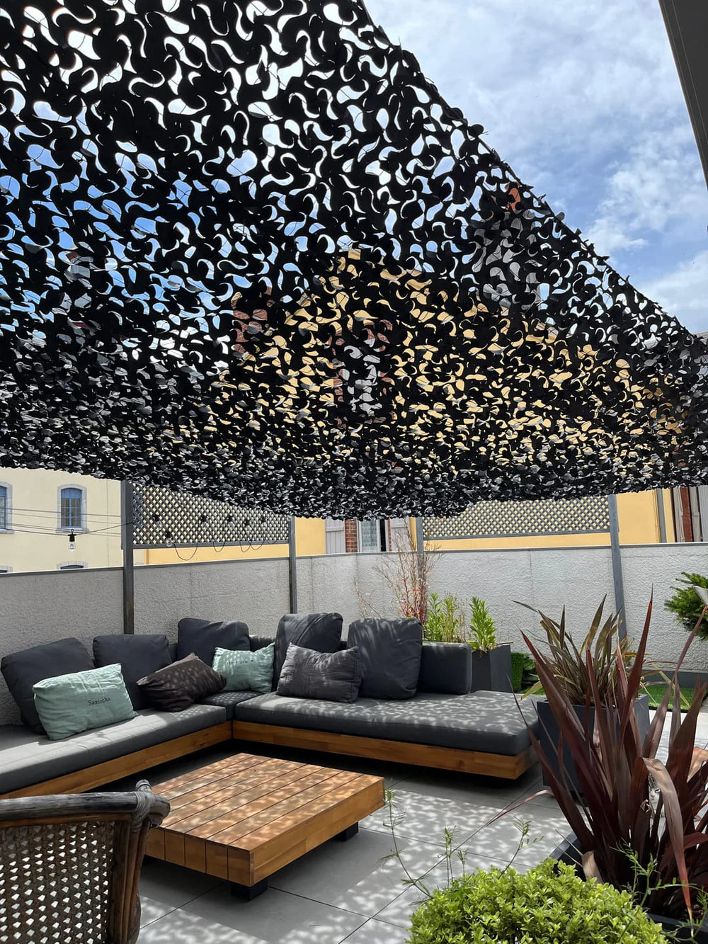 Aproveite seu terraço o ano todo, deixando entrar ar e luz com nossa rede de camuflagem. Retome o controle do seu terraço.
